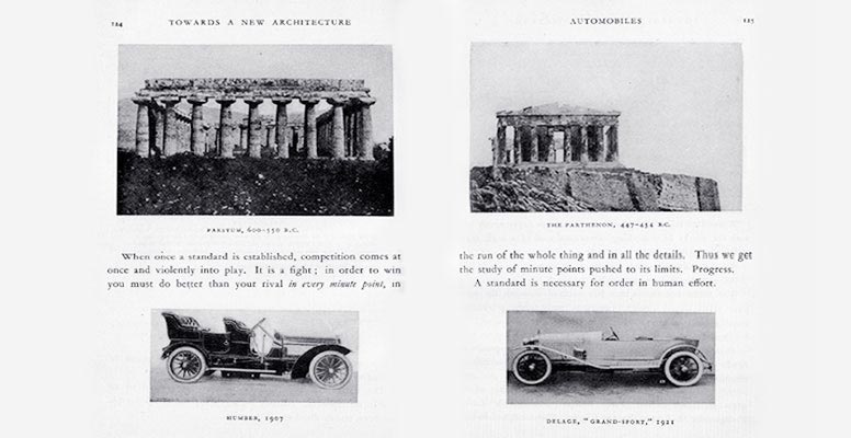 I sin bok Modern architecture since 1900 siterer forfatteren William J.R. Curtis en ikke navngitt historiker som hevder at: ”Every artist finds his own Antiquity”.[3] Corbusiers modernisme er helt klart et brudd med foregående generasjoners arkitektoniske svermeri for historisme og overlesset dekor i form av fabelfigurer og dragehoder, påklistret stukk, eller forfalsket elde. Han var selvsagt også kjent med sin egen læremester Alfred Loos sitt heftige oppgjør med fortiden i forelesningen og boken Ornament and Crime, fra 1908. Corbusier, som hans kolleger, søkte i sitt uttrykk derfor både tilbake til, og fremover mot en funksjonell arkitektur som sett i antikkens templer, hvor søyler faktisk bærer, hvor form følger funksjon, hvor inne- og utearealer kommuniserer og hvor rom og lys er viktigere enn ornamentikk.