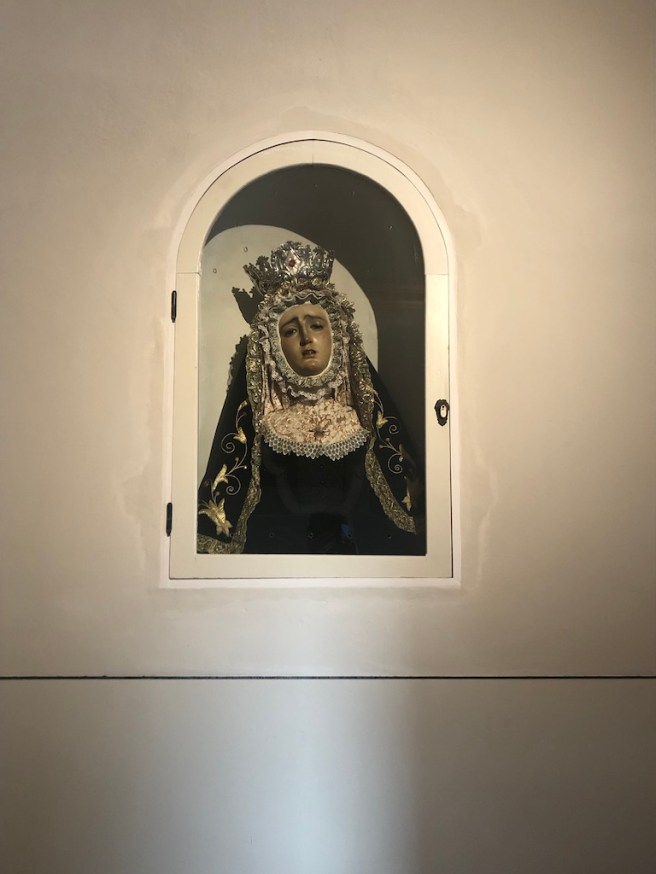 Vi legger også turen innom den beskjedne og lille, men vakre Iglesia de San Sebasan som ble grunnlagt i 1637. I denne landsbykirken, eller på vei l og fra, kan vi også snakke li om hvordan katolsk tro, påskeprosesjoner og andre seremonier egentlig arter seg, og hvilken betydning de mange andre og svært ulike trossamfunnene har den dag i dag i Spania.