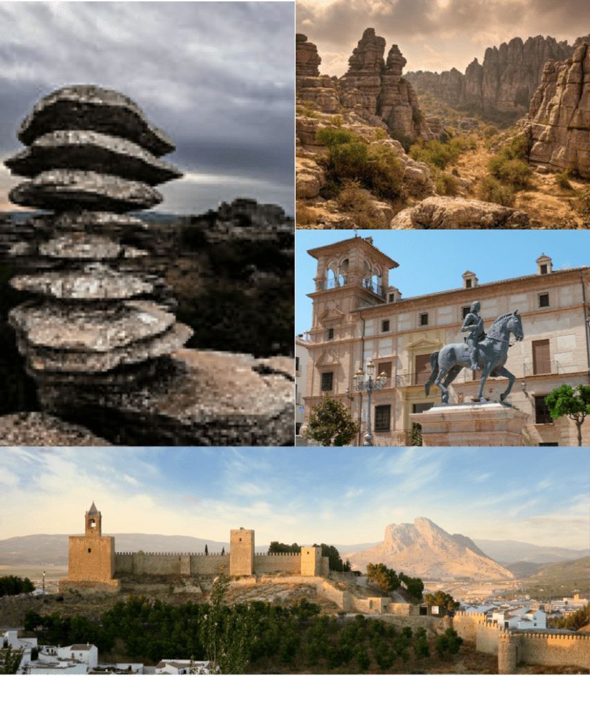 Vi går ut på utsiktpunktet som gir oss et storslått perspektiv, over svimlende tinder, gråstein, åpen himmel og frodig dal, helt ned mot havet. På besøkssenteret like ved kan vi finne mer informasjon om fjellpartiet, og få kjøpt oss en kopp kaffe. Om noen gruppen ønsker kan vi også gå en kort fottur i området, mellom fjellgeiter og ufoliknende formasjoner, før vi kjører inn mot den lille, men historisk meget viktige byen Antequera.